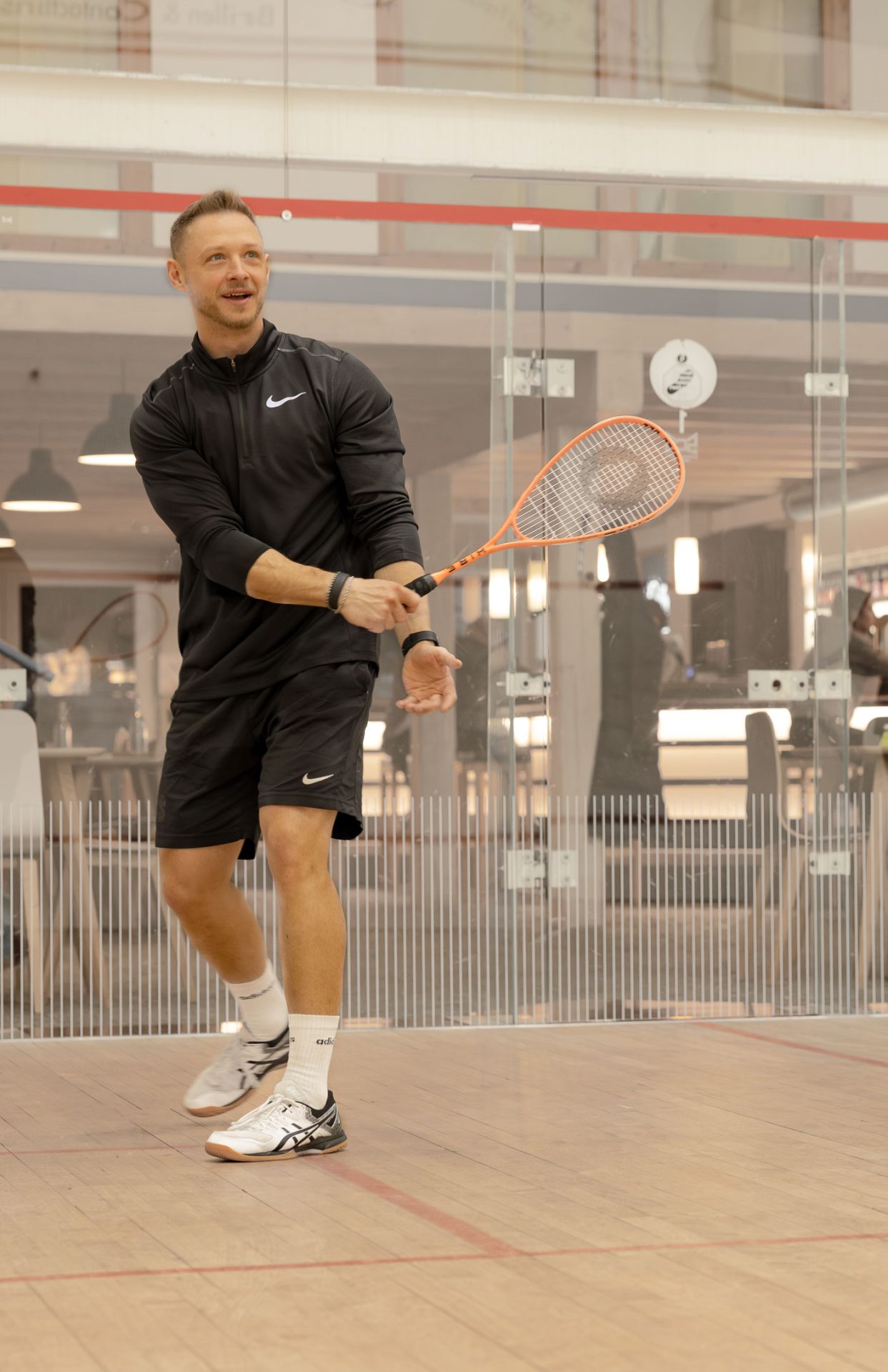 Perfekte Bedingungen für Einzel- und Doppelspiele auf professionellen Badminton- und Squashfeldern.